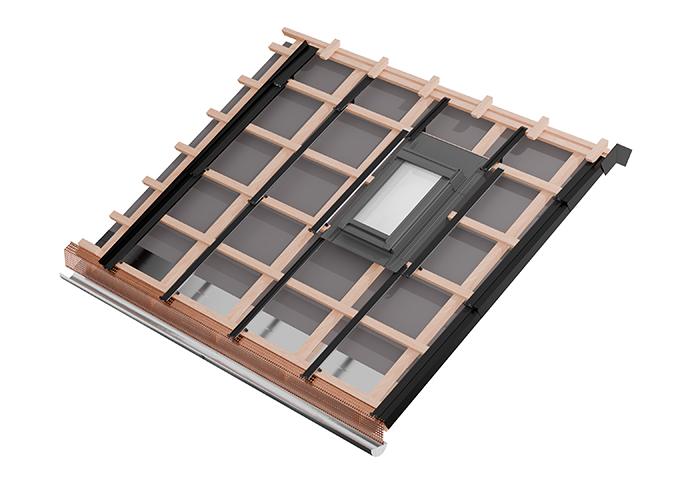 Le système repose sur un lattage simple et standardisé. Les crochets de fixation et les rails de support LEVEL Up permettent un montage rapide et forment une couverture de toit étanche avec recouvrement. L’eau de pluie s’écoule correctement et la ventilation arrière est garantie.